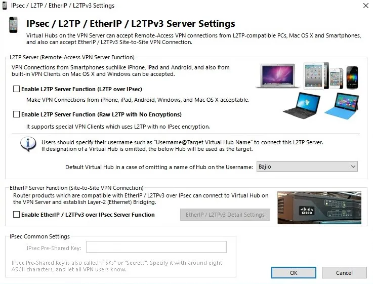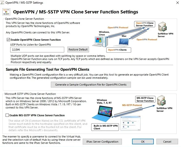 - SSL-VPN (Optimizado para SoftEther puede ser usado en sistemas operativos Windows, MacOS y Linux )